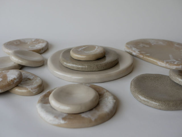 Galet de table. Véritable écrin à poser sur table ou à suspendre au mur, dans l'univers de la maison. Chaque pièce est unique. Pour les finitions Neige Cendrée, les pièces sont toutes issues d'une fabrication instinctive, les différents émaux sont superposés selon une technique qui m'est propre. L'émail de cendre qui est utilisé en parti est issu de cendre de mon poêle.